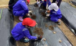 畑にジャガイモの種芋を植えました。 ジャガイモ植え付け(小)…