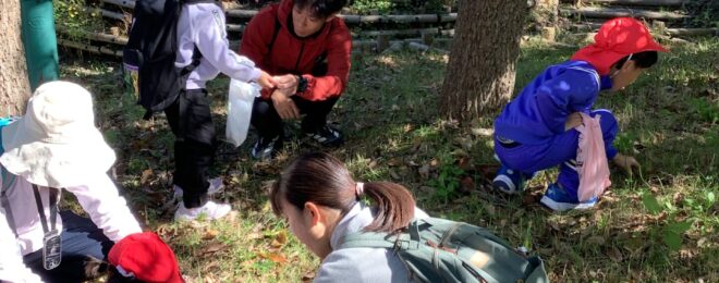 赤や黄色の葉っぱを探したり、どんぐりを拾ったりしました。 落ち葉拾いに行ったよ!(幼)…